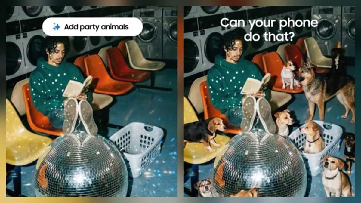 Trong video, người dùng chỉ cần nhập dòng chữ như 'Thêm những người thích tiệc tùng', và chỉ trong vài giây, hệ thống đã tự động bổ sung các chi tiết phù hợp vào bức ảnh với độ chân thực cao. Đáng chú ý, toàn bộ quá trình đều được ghi lại trực tiếp, thể hiện sự tự tin của Samsung vào công nghệ của mình.