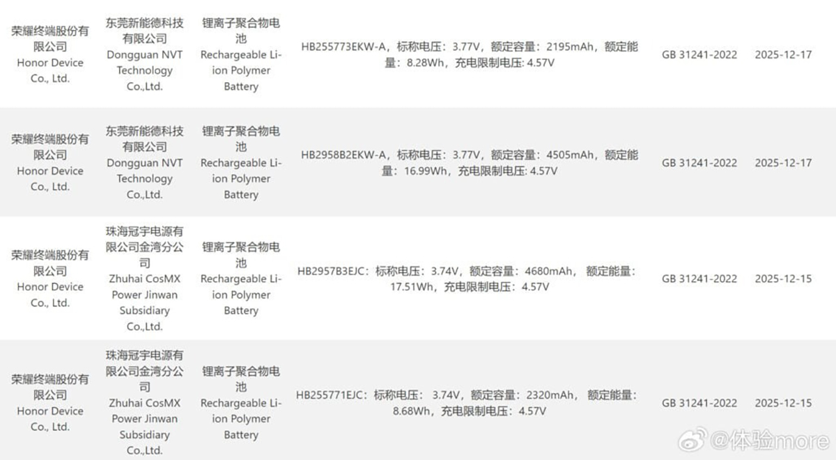 Magic V6 không chỉ thu hút sự chú ý nhờ thời gian trình làng mà còn nhờ vào những thông số kỹ thuật nổi bật. Theo một nguồn tin rò rỉ, chiếc smartphone này sẽ được trang bị viên pin lớn nhất từng có trên một thiết bị gập, với tổng dung lượng lên tới 7,150mAh. Cơ quan chứng nhận 3C của Trung Quốc đã xác nhận thông tin này, bên cạnh đó còn có phiên bản dung lượng pin ở mức 6,850mAh.