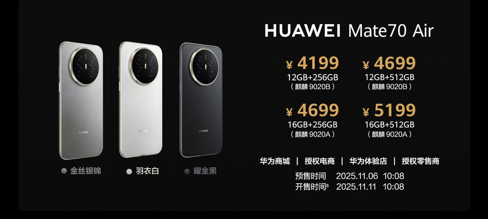 HUAWEI Mate 70 Air chính thức xuất hiện tại Trung Quốc, mở rộng dòng sản phẩm Mate 70 với thiết kế 'mảnh mai' nhưng vẫn giữ được phần cứng mạnh mẽ và đầy đủ tính năng. Sản phẩm này được xem là một đối thủ đáng gờm của iPhone Air, tuy không mỏng bằng nhưng sở hữu dung lượng pin lớn và hệ thống camera linh hoạt hơn.