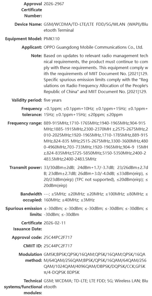 Một nguồn tin khác, tipster DCS, tiết lộ rằng OnePlus Ace 6 Ultra đã hoàn tất quy trình chứng nhận tại Trung Quốc, tuy chưa có thông tin cụ thể về mã số model. Cộng đồng yêu thích công nghệ đã phát hiện một thiết bị OPPO/OnePlus với mã PMK110 trong cơ sở dữ liệu của SRRC, cơ quan quản lý tần số vô tuyến tại Trung Quốc, nhưng vẫn chưa xác định đây có phải là Ace 6 Ultra hay không.
