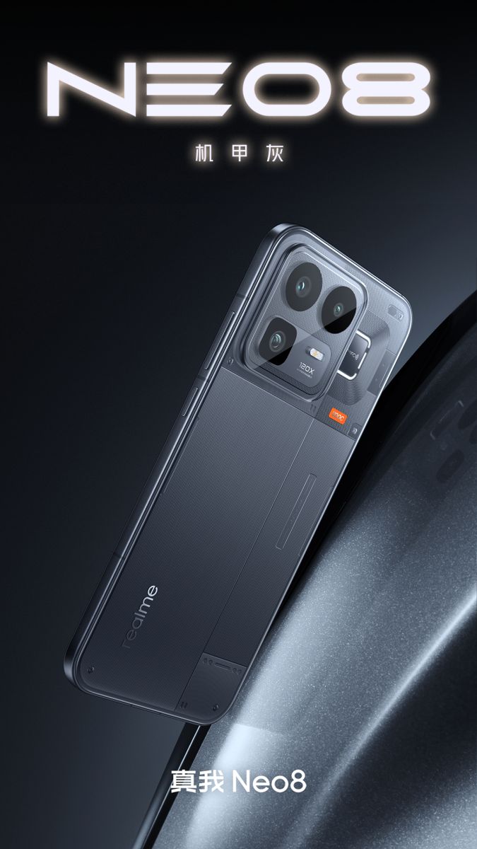 Theo các hình ảnh từ realme, Neo8 sẽ xuất hiện với ba màu sắc: Trắng, Xám và Tím. Thiết kế của máy nổi bật với mặt kính sau trong suốt và khung viền kim loại, cùng hệ thống RGB ‘Awakening Halo’ đặc sắc.