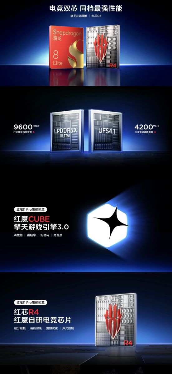 Về cấu hình, RedMagic 11 Air sử dụng chip Snapdragon 8 Elite kết hợp với chip gaming Redcore R4 do chính RedMagic phát triển. Máy còn được trang bị RAM LPDDR5X, bộ nhớ UFS 4.1 và hệ thống tối ưu hiệu năng CUBE Sky Engine, giúp duy trì hiệu suất đỉnh cao và khung hình ổn định trong suốt thời gian dài.