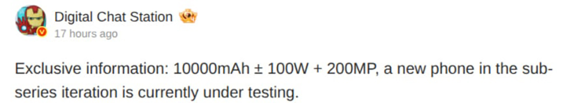 Cụ thể hơn, theo thông tin từ leaker nổi tiếng Digital Chat Station, Xiaomi đang kiểm tra một mẫu điện thoại mới với pin dung lượng lên đến 10000 mAh và hỗ trợ sạc nhanh công suất 100W. Thiết bị này còn được trang bị camera 200MP, hứa hẹn sẽ mang đến trải nghiệm chụp ảnh đỉnh cao.