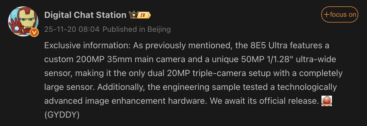 Đáng chú ý, vivo X300 Ultra có thể là thiết bị duy nhất trong phân khúc flagship sở hữu đồng thời hai camera 200 MP. Camera phụ dự đoán là ống kính tele với cảm biến Samsung ISOCELL HPB, giúp duy trì vị thế dẫn đầu của vivo trong công nghệ zoom.