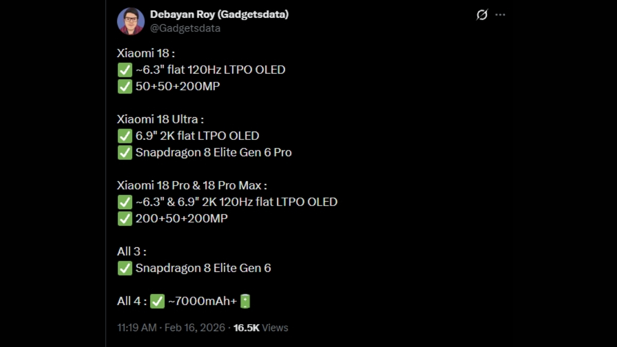 Các nguồn tin đáng tin cậy đã tiết lộ thông số kỹ thuật chi tiết của dòng điện thoại Xiaomi 18 sắp ra mắt, với những điểm nhấn ấn tượng về cấu hình. Đáng chú ý nhất là việc Xiaomi mạnh tay nâng cấp bộ vi xử lý và dung lượng pin.