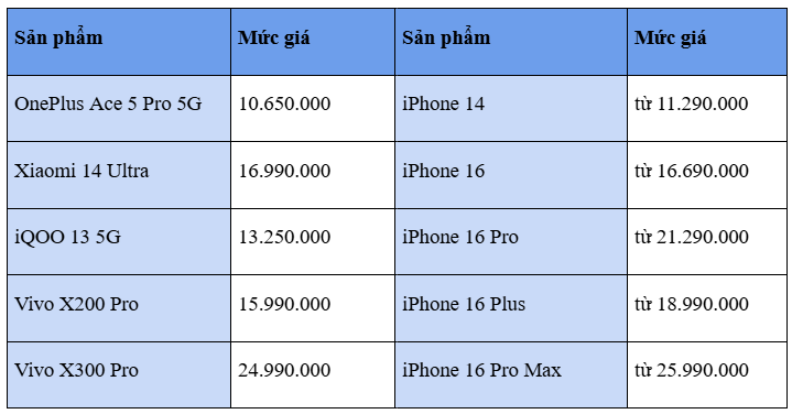 Top sản phẩm khuyến mãi tháng 1/2026 phân khúc tầm trung