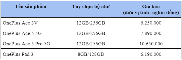 Top sản phẩm khuyến mại tháng 9/2025 ngành hàng OnePlus