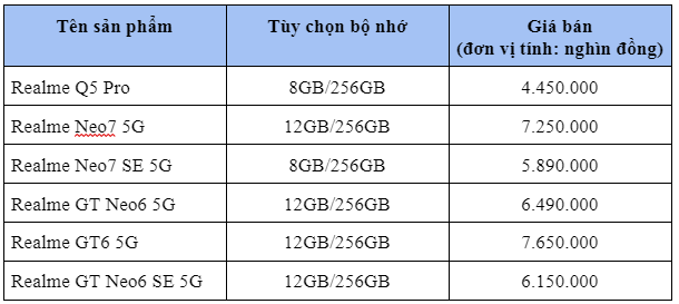 Top sản phẩm khuyến mại tháng 9/2025 ngành hàng Realme