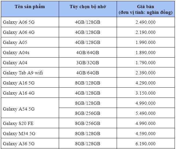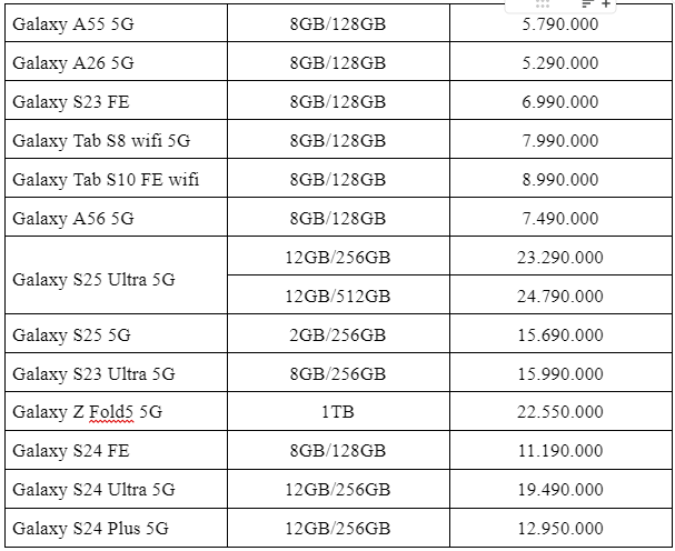 Top sản phẩm khuyến mại tháng 9/2025 ngành hàng Samsung