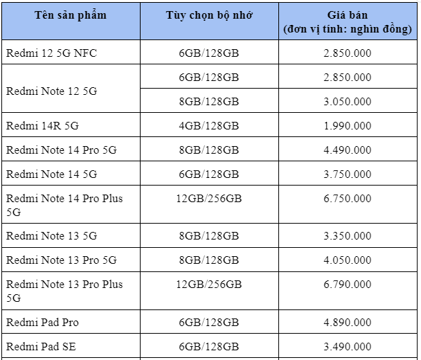 Top sản phẩm khuyến mại tháng 9/2025 ngành hàng Xiaomi