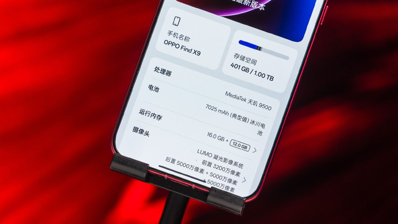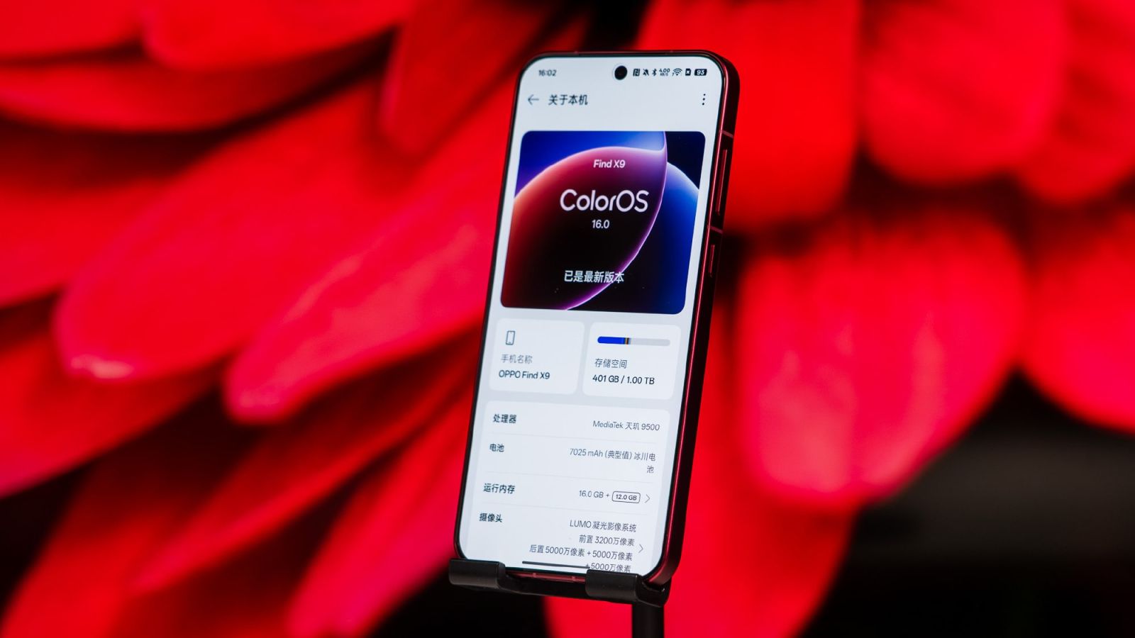 Oppo Find X9 5G sở hữu RAM từ 12GB đến 16GB, ROM 256GB đến 1TB, hệ điều hành Android 16 cùng tùy chỉnh giao diện người dùng ColorOS 16, chuẩn bộ nhớ trong UFS 4.1 4 làn đầu tiên tăng tốc độ dữ liệu tuần tự 100%, hiệu quả tải mô hình AI tới 40% (nguồn: MediaTek).