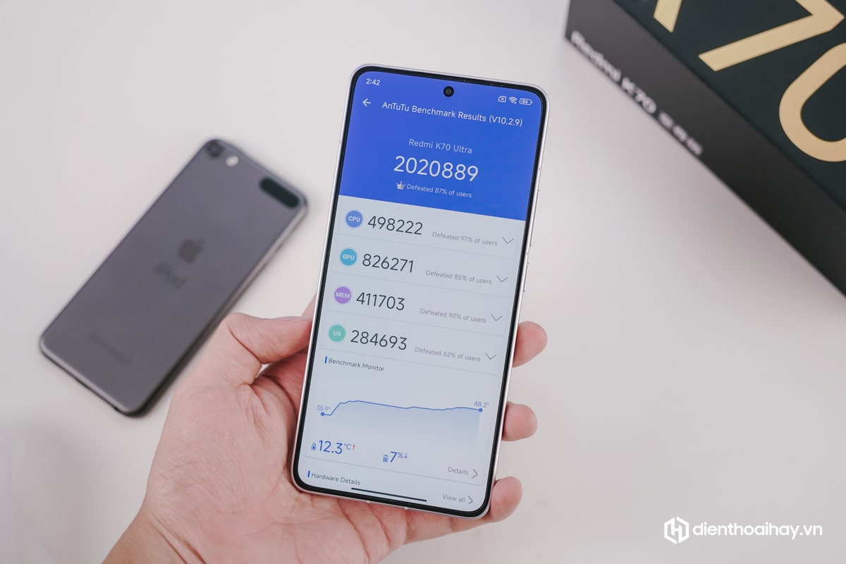 Redmi K70 Ultra thăng hoa thị giác với màn hình đỉnh cao, mất thần 144Hz siêu mượt mà, đỉnh sáng 4000 nits cùng tấm nền OLED 1.5K, 68 tỷ màu sống động và công nghệ bảo vệ mắt PWM tần số cao. Redmi K70 Ultra đi sâu vào từng trải nghiệm người sử dụng, nhờ pin 5500mAh bền bỉ, sạc tia chớp 120W, sức mạnh Dimensity 9300+ chiến game, xem phim, tác vụ nặng đều mượt. Thiết kế khung kim loại bền chắc, IP68 chống nước bụi, an tâm sử dụng trong mọi điều kiện.