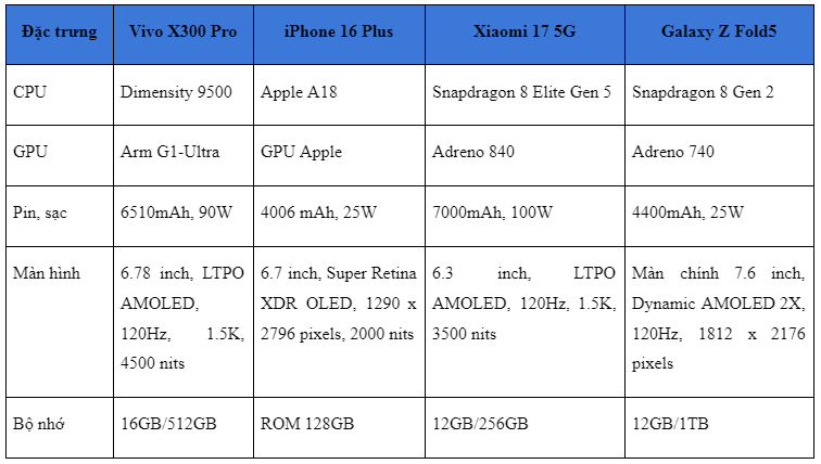 Vivo X300 Pro, Xiaomi 17 5G, Samsung Galaxy Z Fold5, iPhone 16 Plus VN/A chính hãng là nhóm thiết bị dành cho người chơi game tập trung vào hiệu năng đỉnh cao, quản lý nhiệt tốt, chất lượng màn hình trải nghiệm mượt mà nhất. Các thiết bị này không đơn thuần chỉ là đáp ứng nhu cầu giải trí của người chơi game phổ thông, mà còn hoàn toàn đáp ứng yêu cầu khắt khe của nhóm game thủ chuyên nghiệp. Thông qua thiết kế đa dụng, vẻ đẹp thời thượng, cao cấp cùng hỗ trợ cập nhật phần mềm lâu dài, những flagship này hứa hẹn hữu ích cho cả giải trí và công việc hàng ngày.