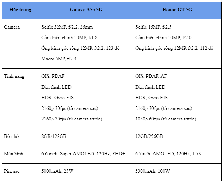 Đối với những ai yêu mến thương hiệu Samsung và Honor, nhu cầu nhiếp ảnh được Galaxy A55 5G cùng Honor GT 5G cân mượt chỉ trong tích tắc. Từ ảnh selfie ngẫu hứng, cho đến bức hình toàn cảnh hay macro, mọi thứ đều được chăm chút tỉ mỉ, tạo ra những tác phẩm nghệ thuật ấn tượng.