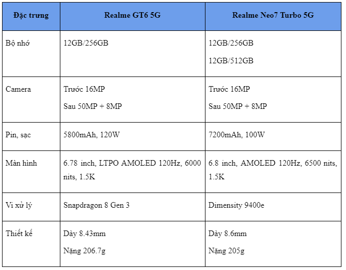 Realme GT6 5G và Realme Neo7 Turbo 5G dành riêng cho phái nữ với thiết kế hiện đại, sang trọng, cùng sức mạnh hiệu năng vượt trội, màn đẹp, rộng rãi, thoải mái cho mọi trải nghiệm thực tế.