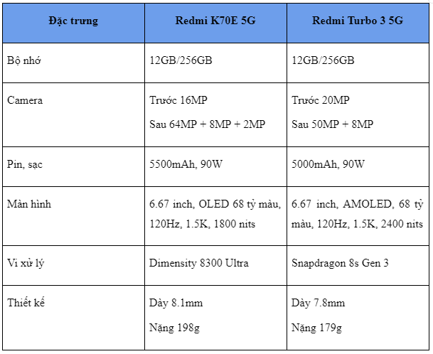 Qua ống kính chuyên nghiệp của Redmi K70E 5G và chiếc Redmi Turbo 3 5G, nàng thơ thỏa thích khám phá thế giới đầy màu sắc thu nhỏ trong tay nhanh lẹ, cuốn hút. Với đầy đủ các tính năng tiên tiến, đa dụng, 2 mẫu smartphone này xứng đáng để bạn lựa chọn.